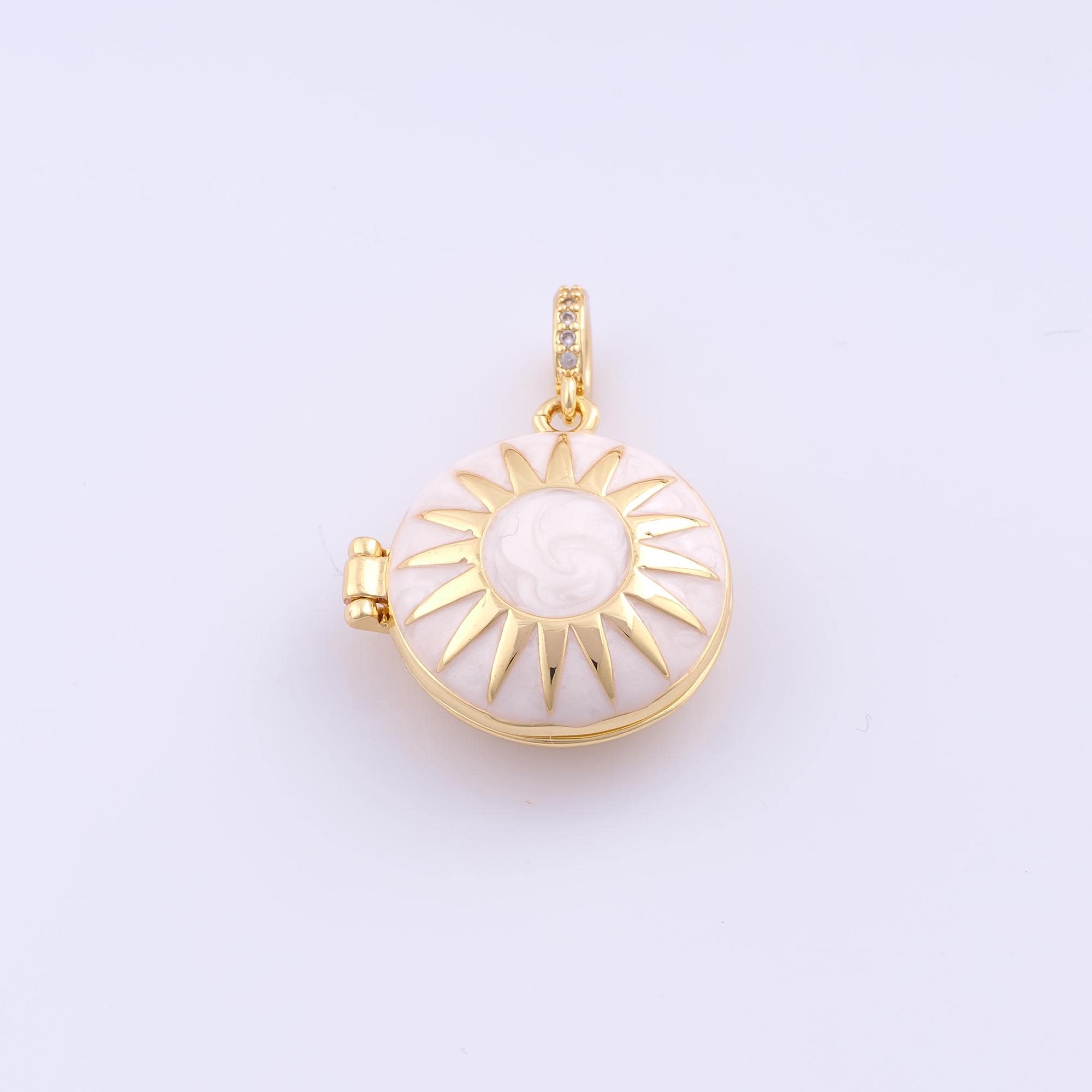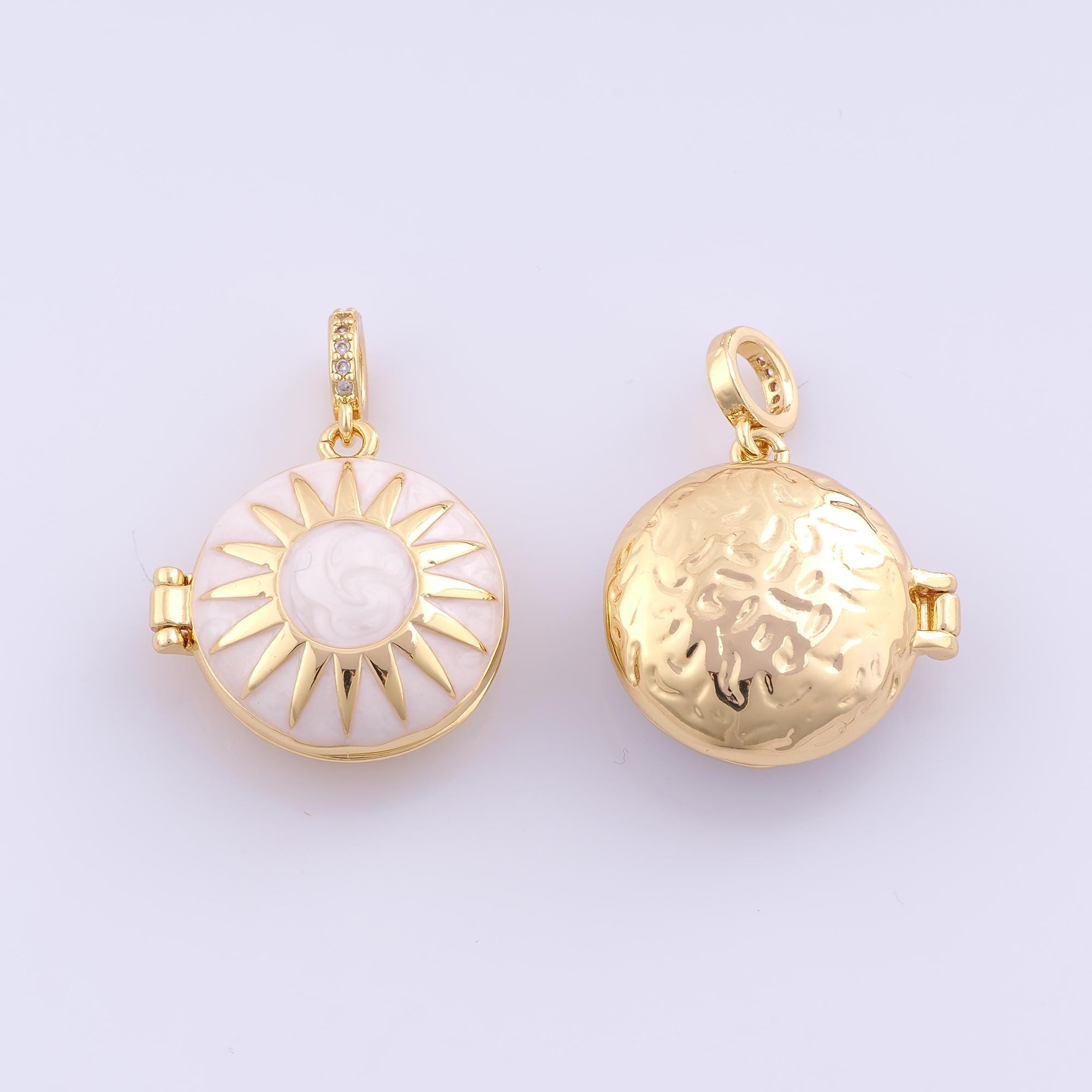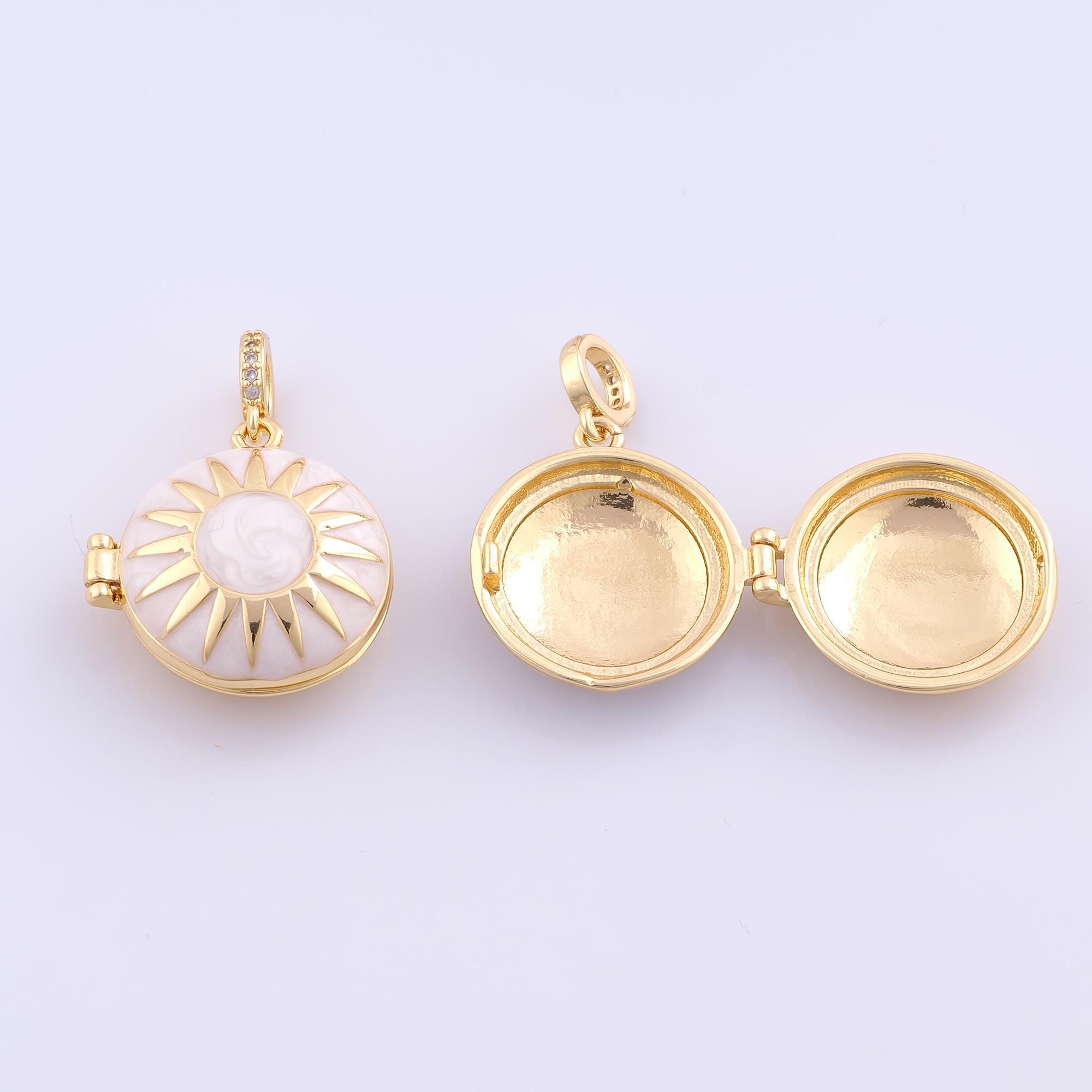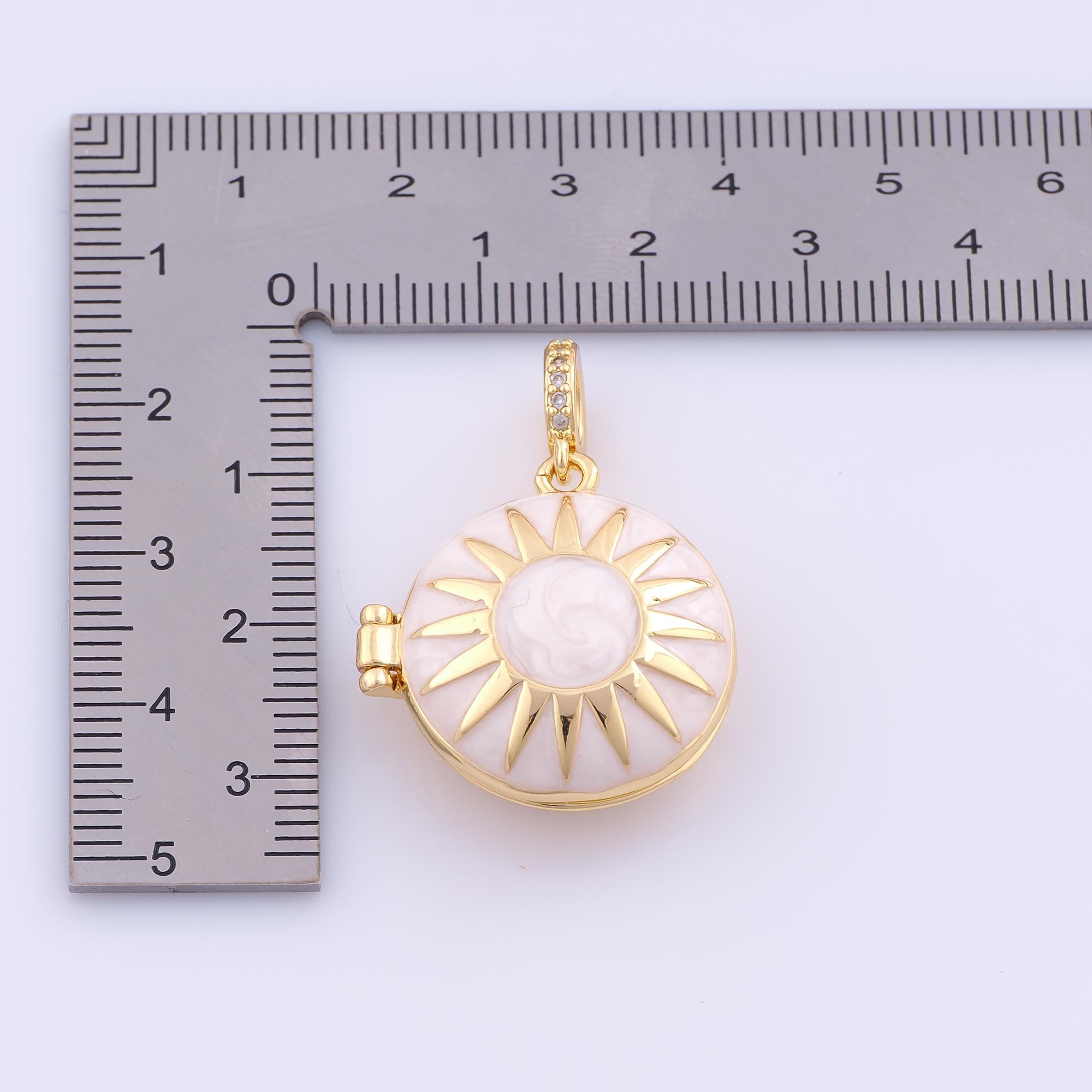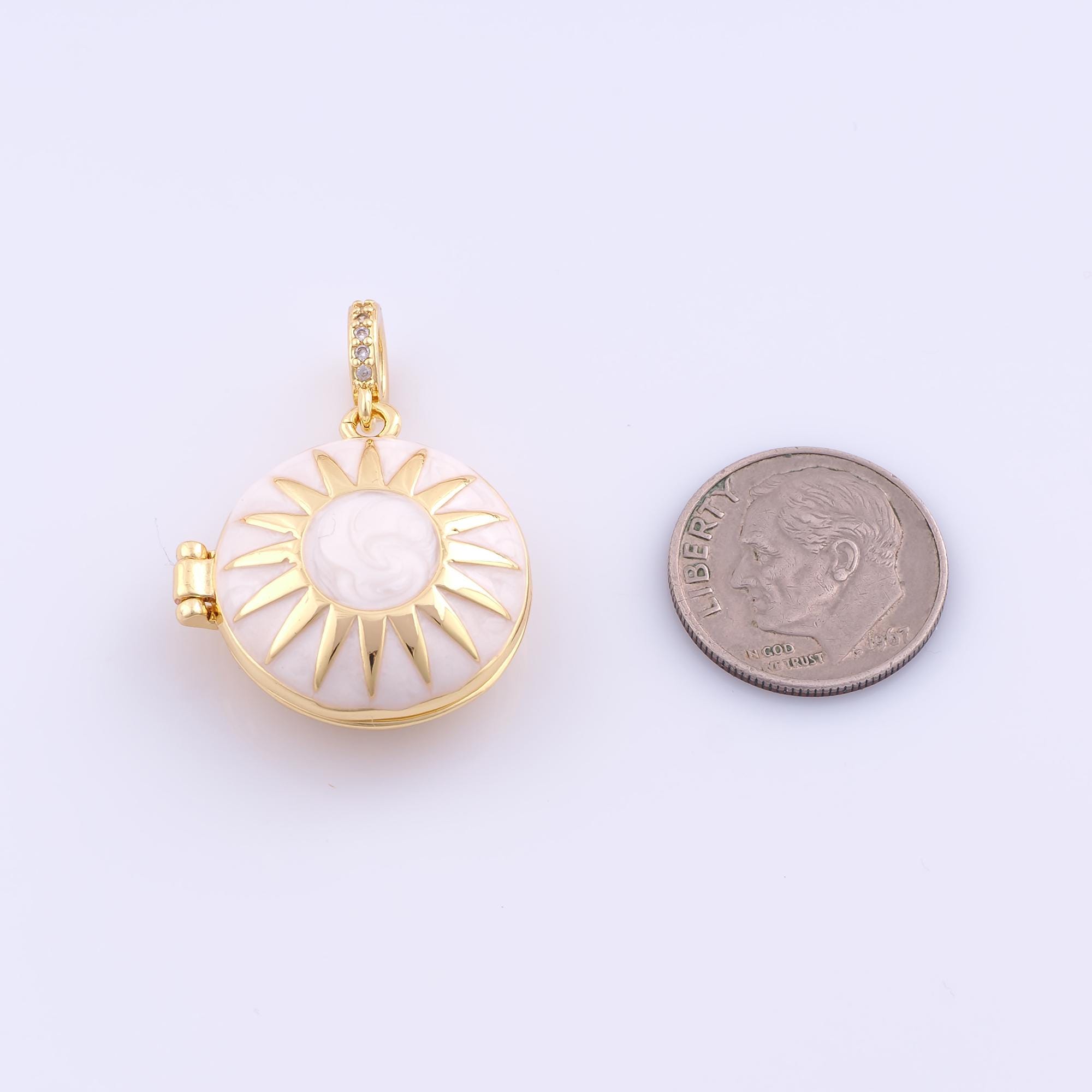 1 pcs Gold Enamel Sun Pendant,18K Gold Filled Photo Frame Charm,Sunburst Charms DIY Bracelet Necklace Jewelry Making Findings Supply